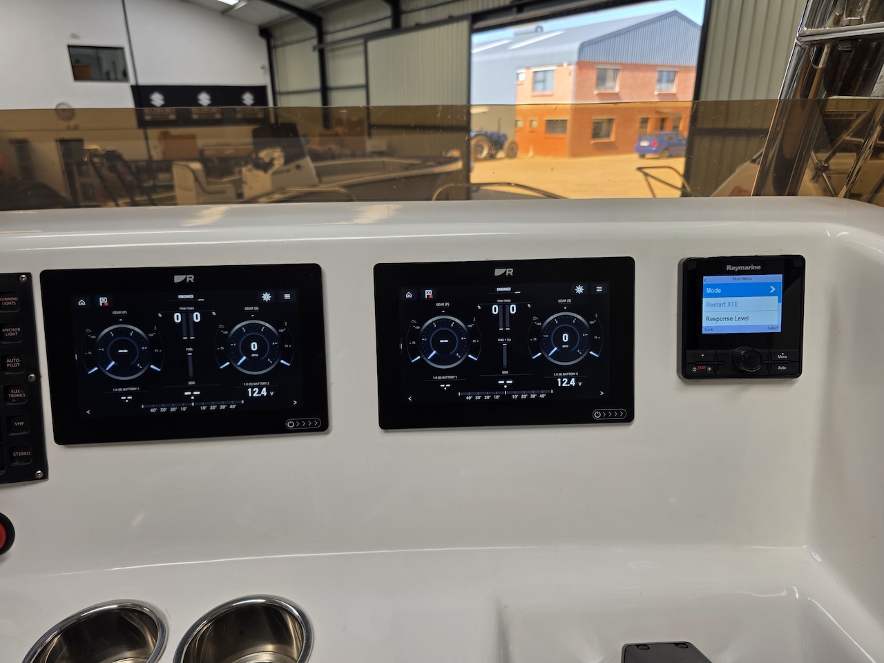 Raymarine VHF, Fishfinder, GPS, Auto Pilot, Dual 9″ Screens